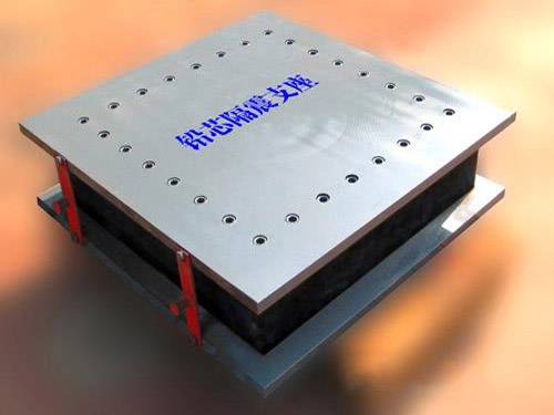 由上連接板 上封板、鉛芯、多層橡膠、加勁鋼板 、保護層橡膠、下封板和下連接板組成。多層橡膠、加勁鋼板構成多層橡膠支座承擔建筑物重量和水平位移的功能,鉛芯在多層橡膠支座剪切變形時,靠塑性變形吸收能量,地震后,鉛芯又通過動態(tài)恢復與再結晶過程,以及橡膠的剪切拉力的作用,建筑物自動恢復原位。對應不同鉛芯、橋梁的要求,隔震橡膠支座可以有不同的疊層結構、制造工藝和配方設計,以滿足所需要的垂直鋼度、側向變形、阻尼、耐久性、傾覆提離等性能要求。
